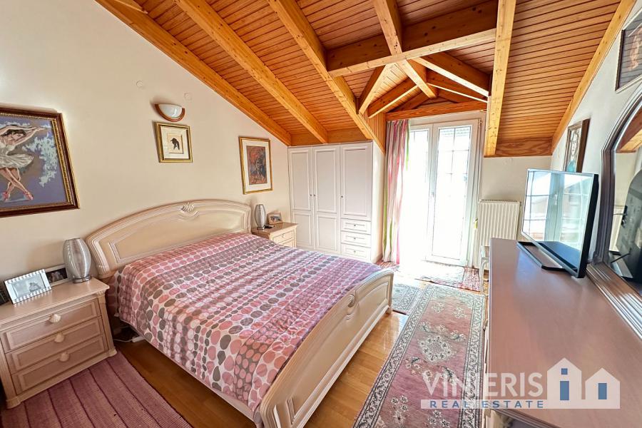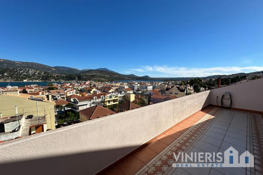 A wooden internal staircase connects the first level to the attic, which features three bedrooms and two bathrooms, enjoying unlimited views over the town of Argostoli. Additionally, the property includes a basement storage room and a garage, providing great functionality and added comfort. A significant advantage is the private elevator servicing from the garage all the way up to the attic, ensuring convenient and easy access to all levels of the apartment.