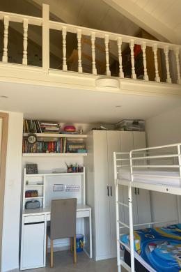Upstairs, three spacious double bedrooms await, two with access to a large balcony and one with a mezzanine ideal for a study or extra accommodation. The main bathroom and a large attic storage space add practicality without compromising on style.