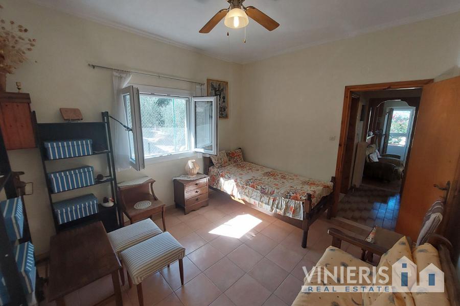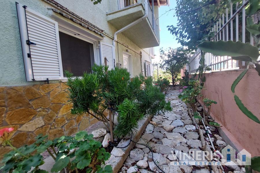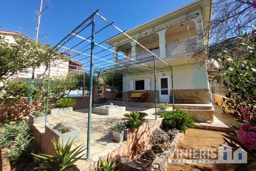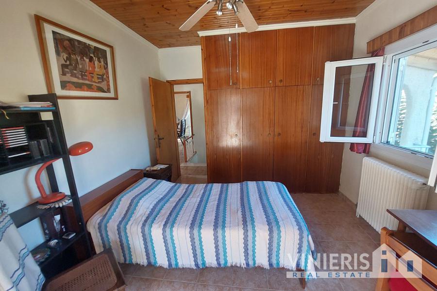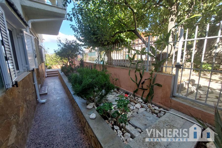 The ground floor (70 sq.m.) includes 2 bedrooms, a living room, a kitchen, a bathroom, a storage area, and 2 large storerooms. An internal marble staircase leads to the first floor, which consists of 2 additional bedrooms, a living room, a dining area, and a bathroom, along with spacious balconies offering breathtaking sea views.