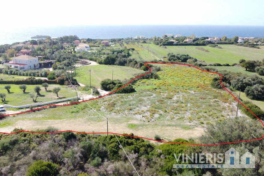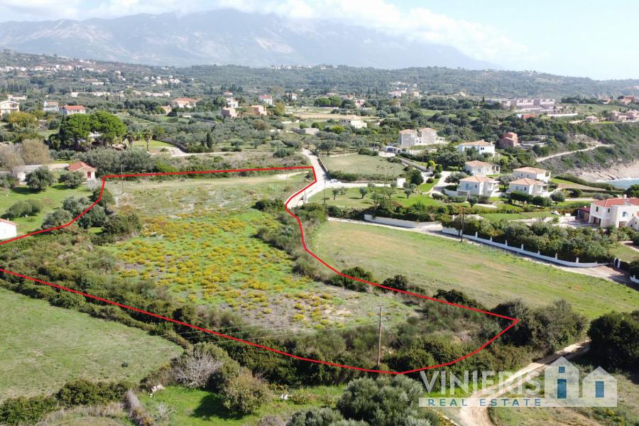 Right above the stunning beach of Ai Helis, with its crystal-clear waters and grey sand, and just a few minutes from the town of Argostoli, lies this exceptional plot of land with a total area of 6,779.61 sq.m.