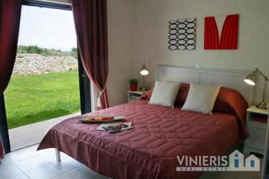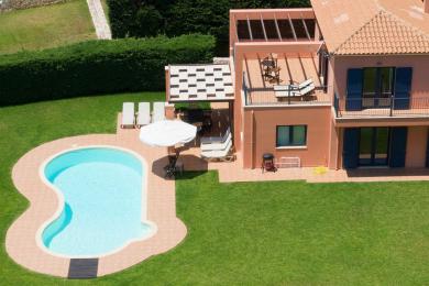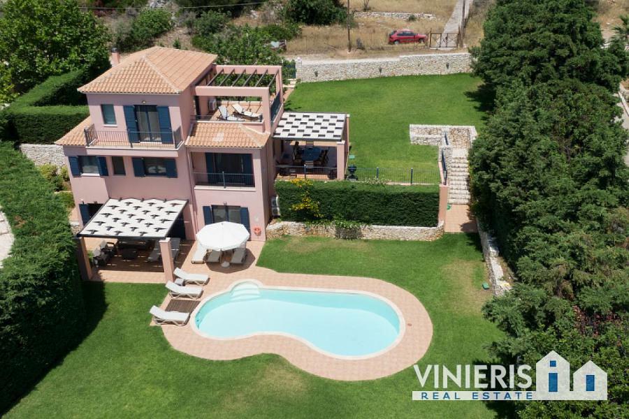 Set over two levels, this villa comprises three bedrooms and two bathrooms. The ground floor includes a kitchen, dining, and living area, along with two bedrooms with garden access. The upper level features a bedroom with en-suite bathroom and a large terrace with stunning Ionian Sea views. The private garden and 42 sq.m. pool complete the sense of luxury and relaxation.