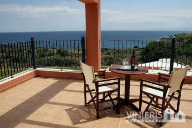 This two-level villa includes four bedrooms and two bathrooms. The ground floor hosts an open-plan living/dining area and a separate kitchen, while the upper floor features two bedrooms with private balconies overlooking the sea. The outdoor area includes a pergola and a private 42 sq.m. pool, ideal for moments of complete tranquility.