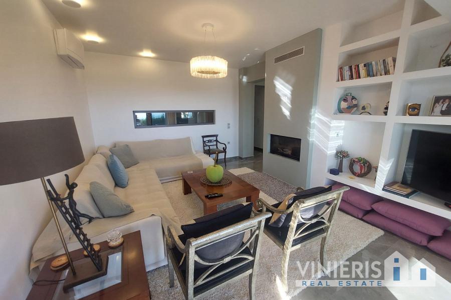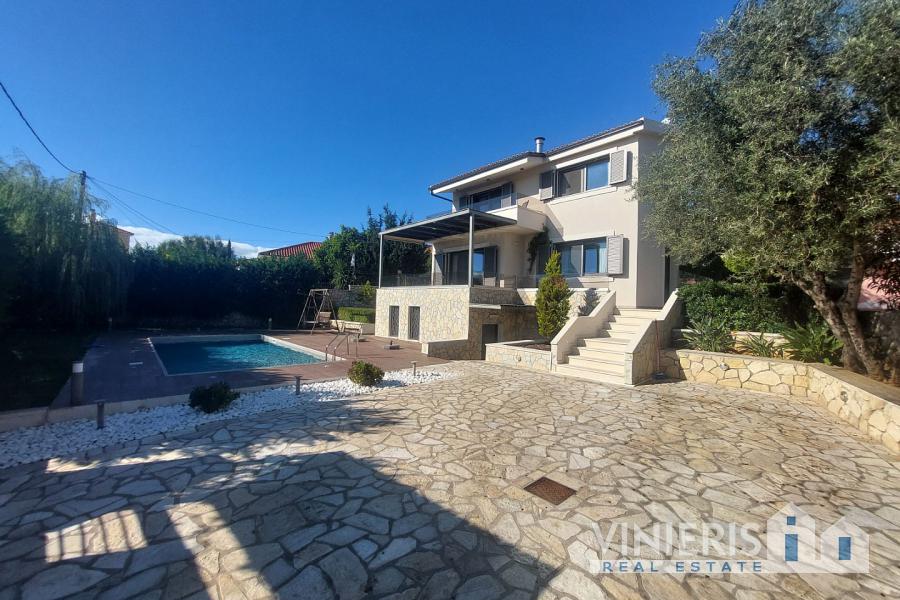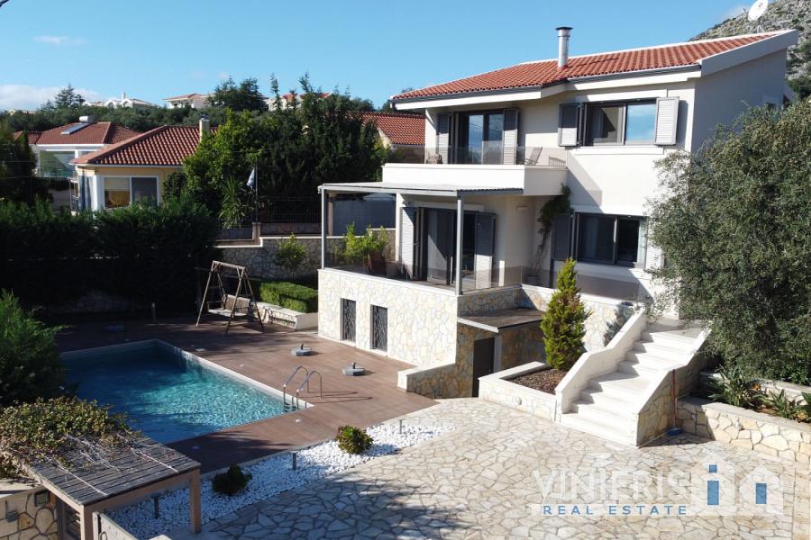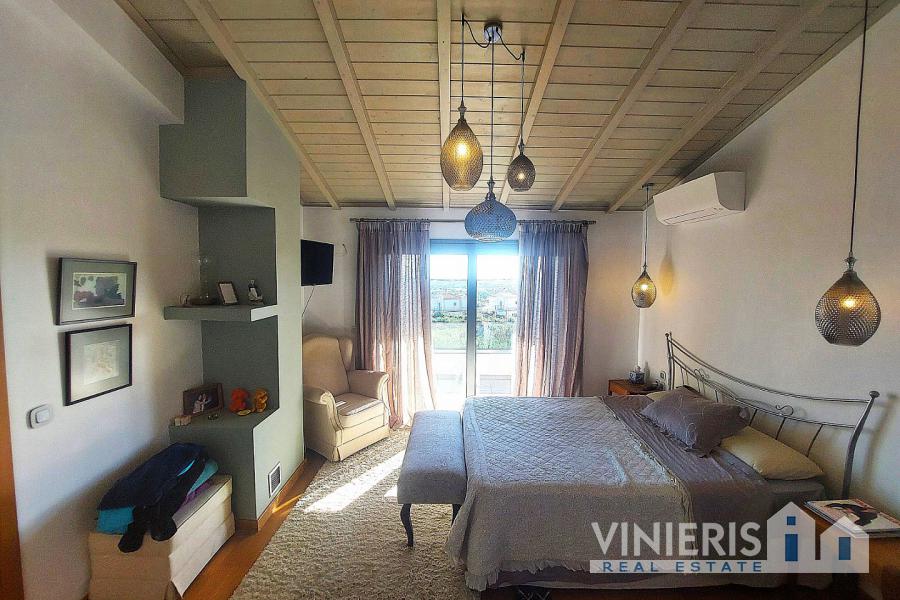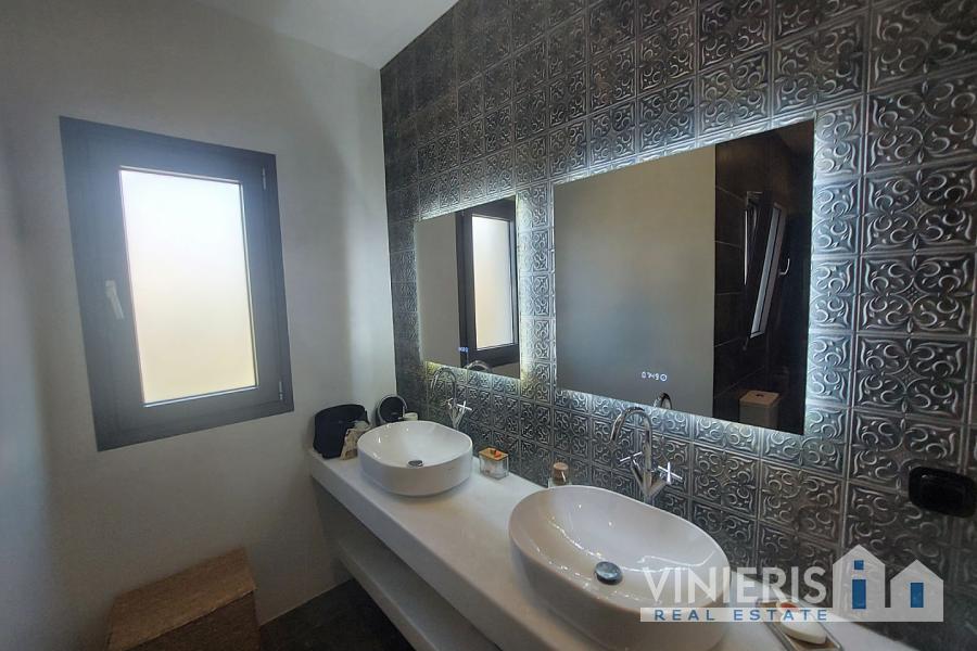In the picturesque village of Karavados, just a few minutes from the crystal-clear beaches of Agios Thomas and Trapezaki, stands this impressive luxury villa of 186.20 sq.m., built on a plot of 851 sq.m. The property is spread over two levels and combines contemporary architecture with comfort and a warm atmosphere, making it an ideal choice for both permanent residence and tourism investment.