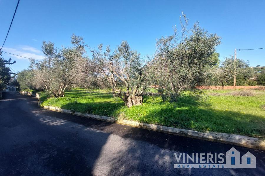 This is a fully buildable plot of land with preliminary approval for a building permit allowing construction of up to 190 sq.m. The land is flat, significantly facilitating any construction project, and is surrounded by lush natural scenery with olive trees.