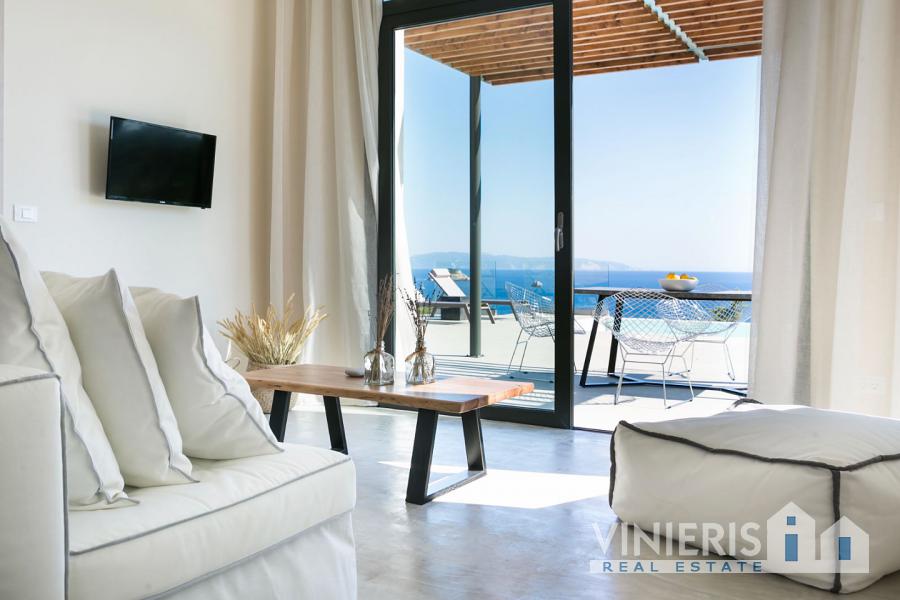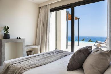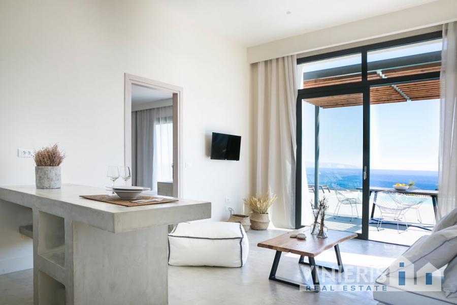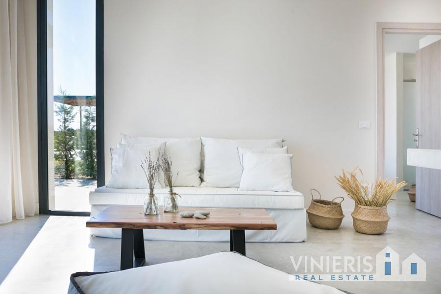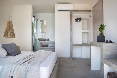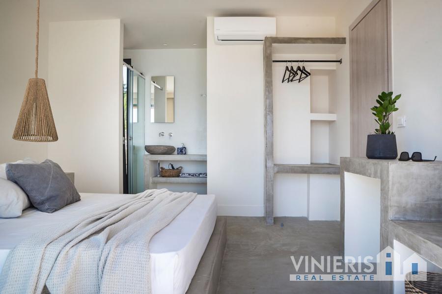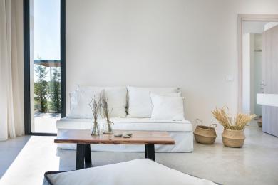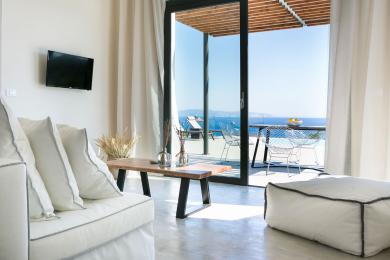 The spacious terraces and private outdoor areas offer breathtaking views of the sea and the natural landscape, providing the perfect setting to enjoy the Greek light, spectacular sunsets, and the ultimate summer living experience.