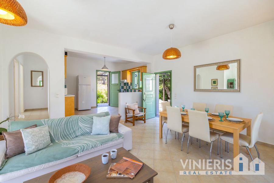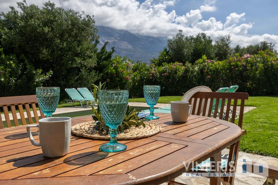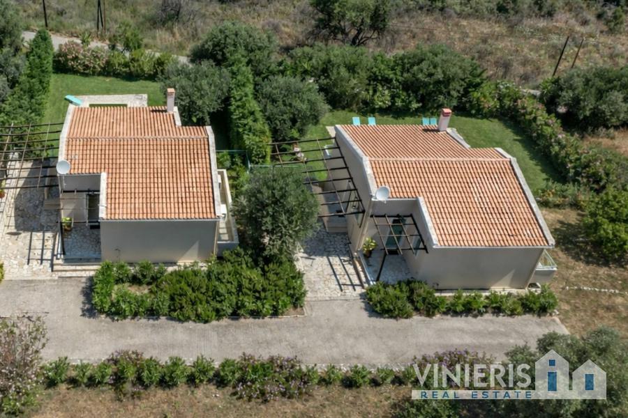 In a serene natural setting, surrounded by olive trees and lush greenery, this unique property consists of two independent, high-aesthetic villas. The complex extends across a plot of 5,616 sq.m., offering privacy, a sense of freedom, and uninterrupted connection with nature. Each villa has a surface area of 120 sq.m. and features its own private swimming pool, creating ideal conditions both for personal use and for high-quality tourist exploitation.