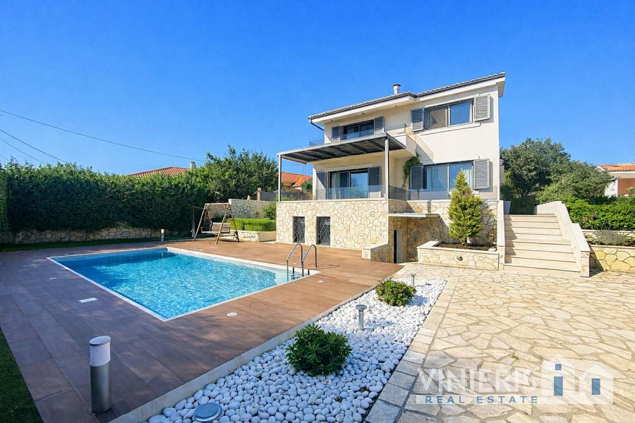 Ο εξωτερικός χώρος ολοκληρώνει την εμπειρία αυτής της μοναδικής βίλας: περιποιημένος κήπος με πλούσια βλάστηση, άνετοι υπαίθριοι χώροι, ιδιωτική πισίνα και χτιστό μπάρμπεκιου δημιουργούν ένα περιβάλλον που προσκαλεί σε στιγμές απόλαυσης και χαλάρωσης όλο τον χρόνο.