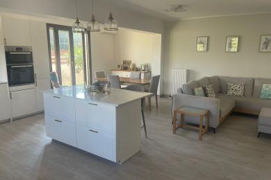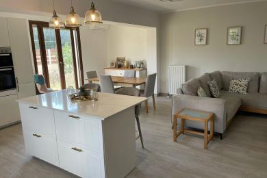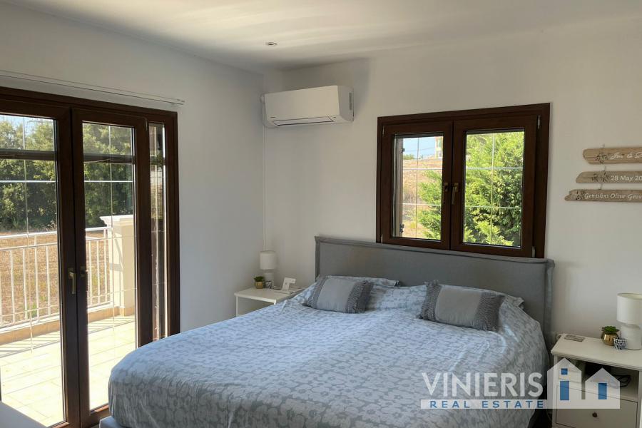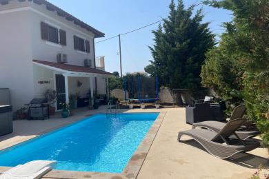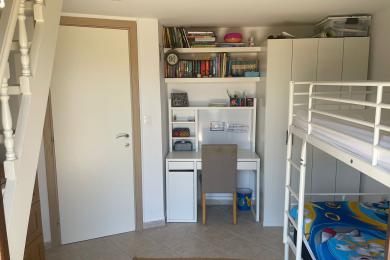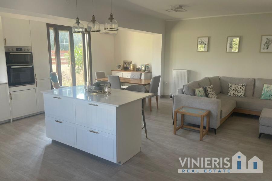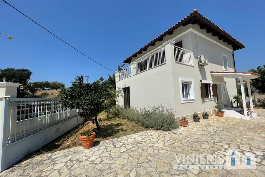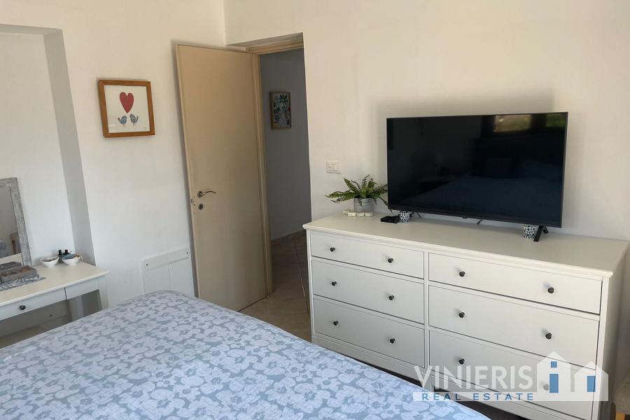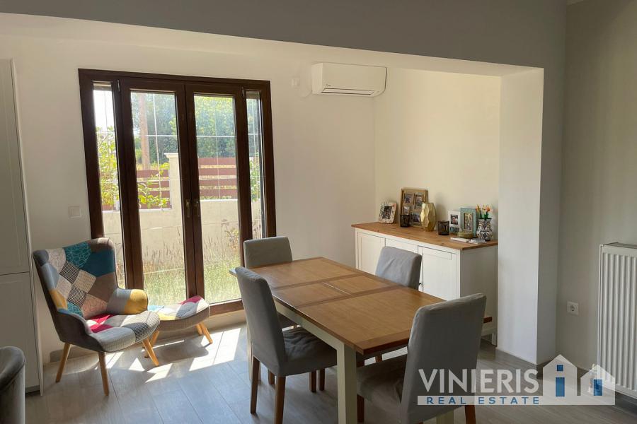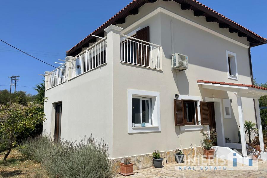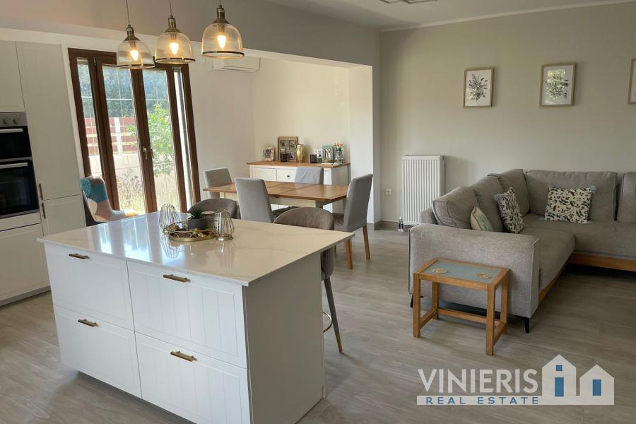 Set on a 710sqm plot, the 132sqm villa features a fully renovated (2024) open-plan kitchen, dining, and living area that flows seamlessly onto a covered veranda overlooking the lush garden and a 7x3.5m pool, perfect for relaxing or entertaining on warm summer days. There is also a guest bathroom and a 10sqm storeroom.