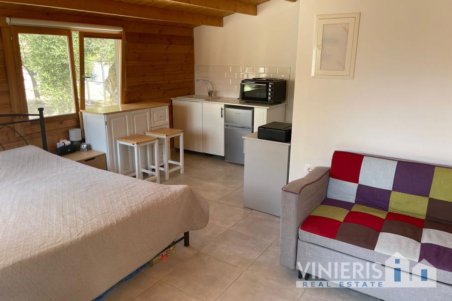A 25sqm guest house, built in 2024, offers an ensuite bathroom, kitchenette, and air conditioning, perfect for visitors or generating rental income.