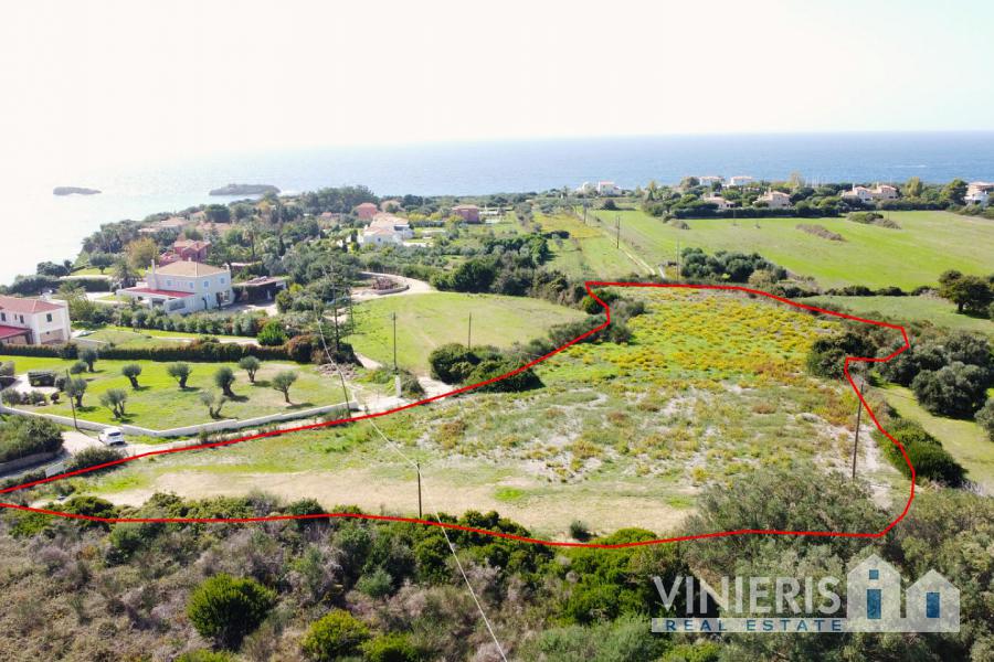 Right above the stunning beach of Ai Helis, with its crystal-clear waters and grey sand, and just a few minutes from the town of Argostoli, lies this exceptional plot of land with a total area of 6,779.61 sq.m.