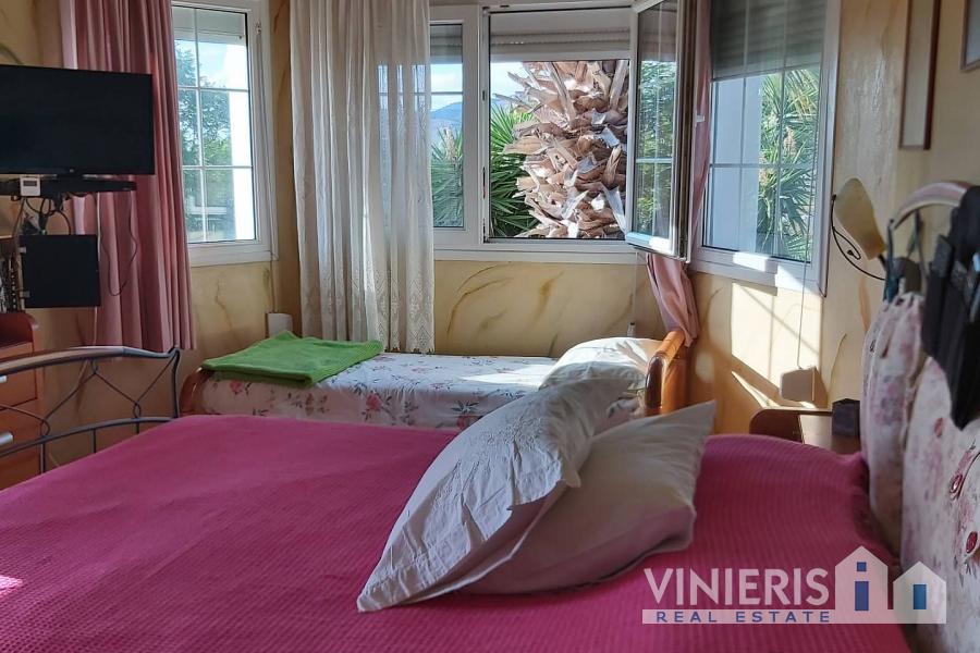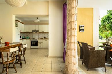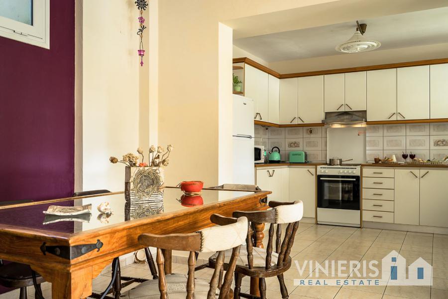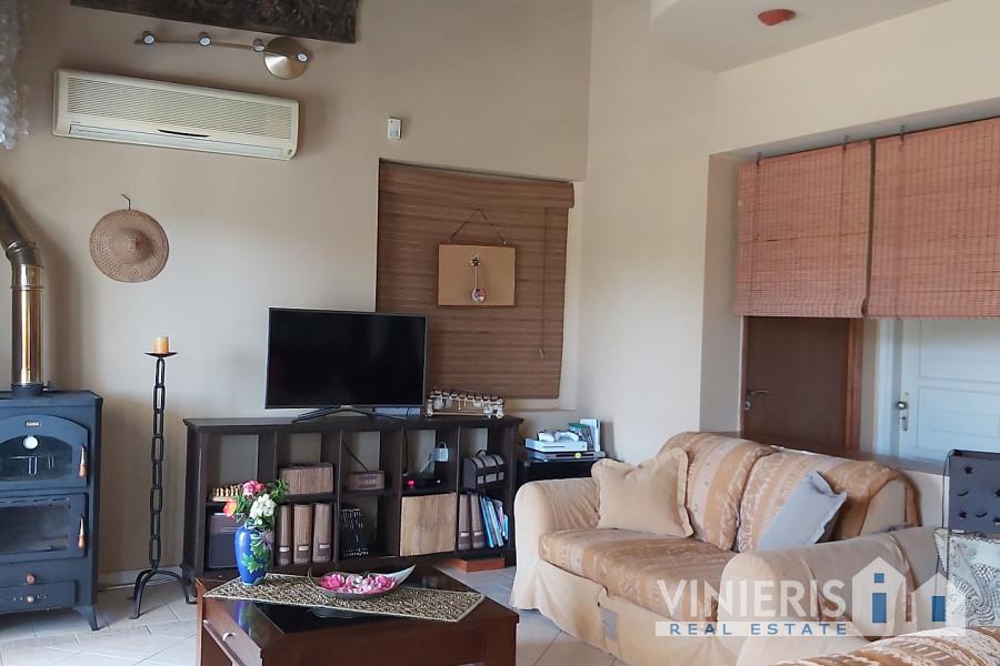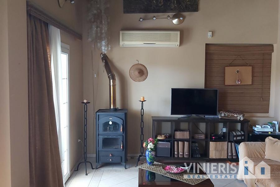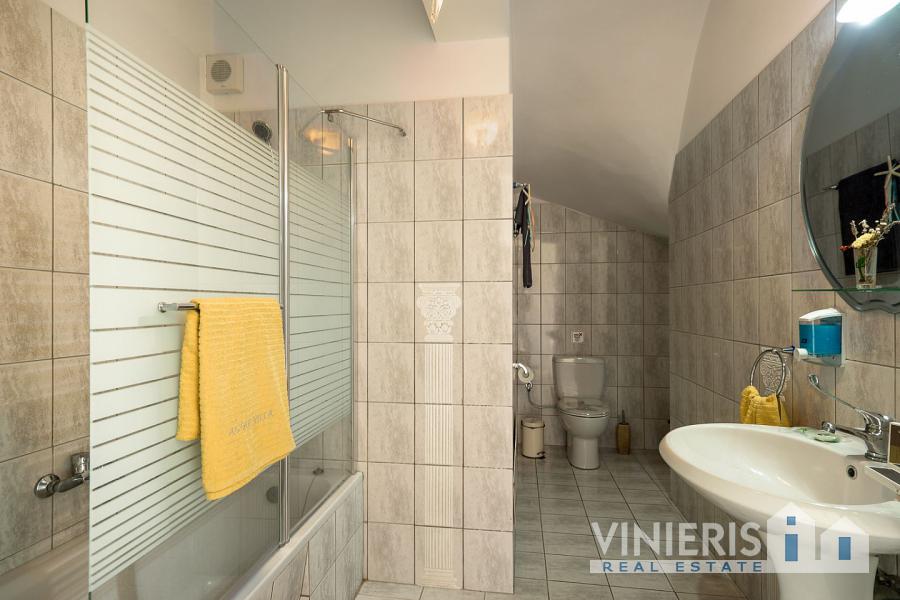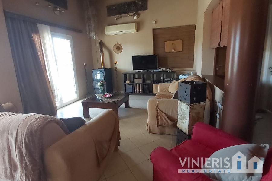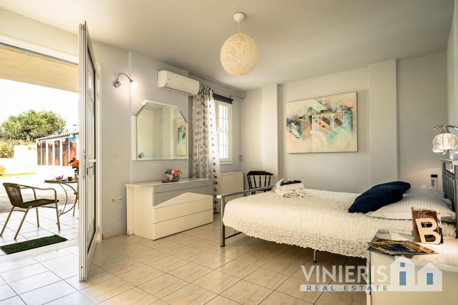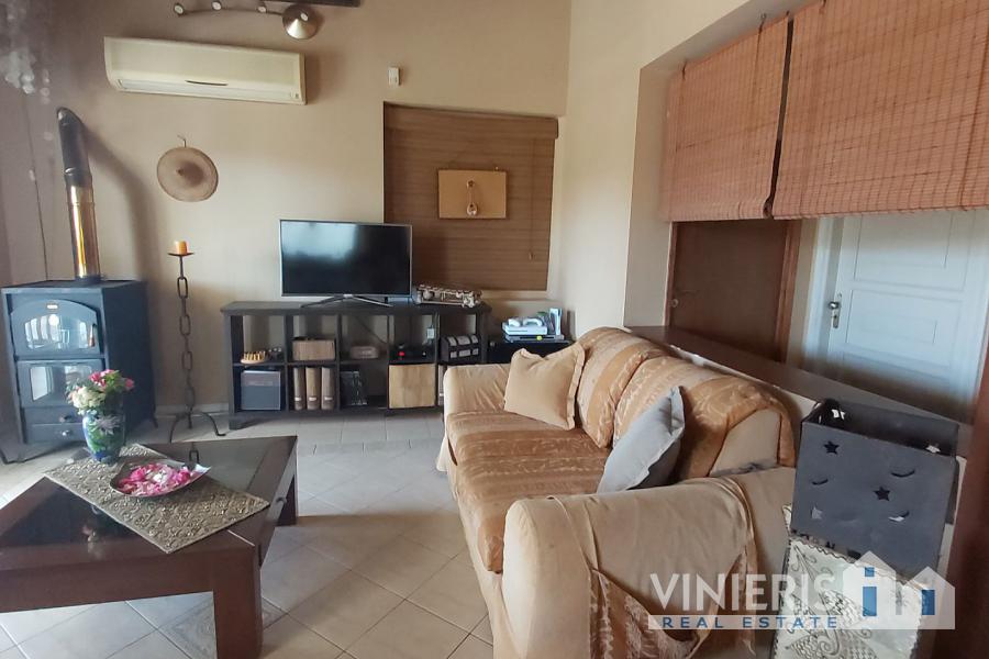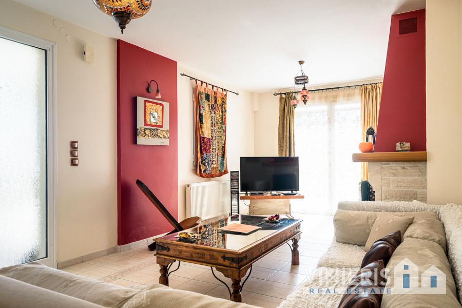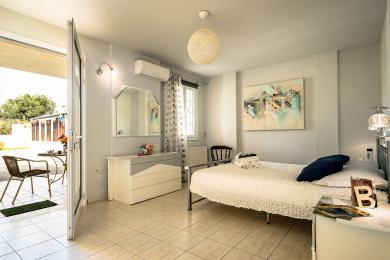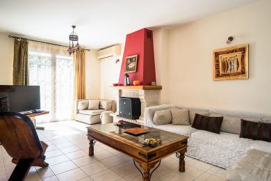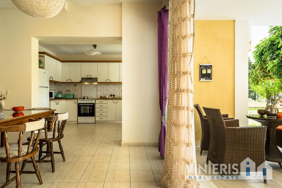 Upon entering the first level, you will find yourself in a spacious area that exudes warmth and comfort. It consists of three spacious bedrooms, ideal for hosting your family and guests, a large walk-in closet offering ample storage space, and two elegant bathrooms with bathtubs. The kitchen is fully equipped and seamlessly connected to a dining area, where the feeling of family warmth prevails. All rooms have direct access to the garden, where you will find a paradise with a lawn, fruit trees, a barbecue area, and a comfortable relaxation space, all surrounded by natural beauty and absolute tranquility.