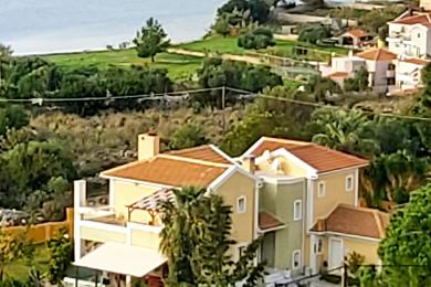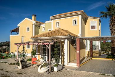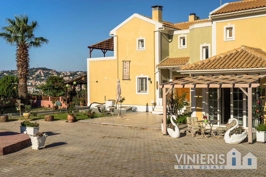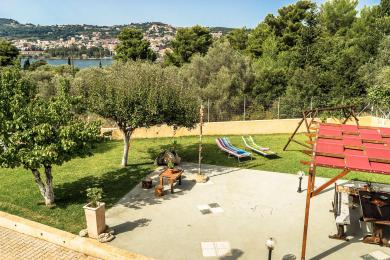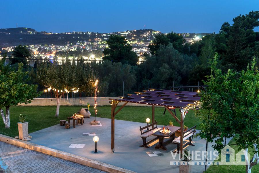 Acqui Villa is an elegant and majestic three-story villa that spans 420 sq.m., nestled within a lush 4,000 sq.m. plot, just 4 km from Argostoli and only 230 meters from the sea. It is located in a spot that offers stunning and unobstructed views of the beautiful bay, the stone Devosetou Bridge, and Lixouri. The villa is surrounded by a fence with an impressive handcrafted entrance gate, providing privacy and security, while its proximity to the center of Argostoli allows for quick access to all the amenities and activities of the town.