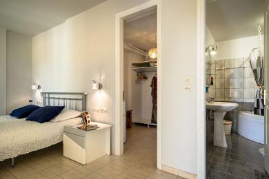 The third level is the ultimate place for peace and seclusion. It features a large master bedroom with its own bathroom and walk-in closet, ideal for moments of relaxation and tranquility. There are also two more spacious bedrooms with built-in wardrobes and a bathroom with a shower. The utility room with a laundry and ironing area offers practical solutions for everyday life. All rooms have access to spacious balconies that open up to a unique panoramic view of the lush surroundings and the sea.
